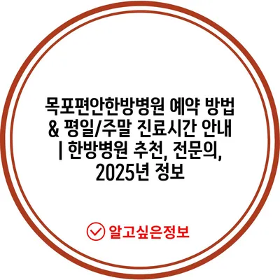 목포편안한방병원 예약 방법 & 평일/주말 진료시간 안내 | 한방병원 추천, 전문의, 2025년 정보