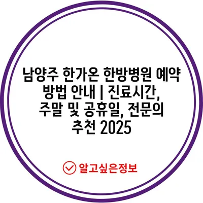 남양주 한가온 한방병원 예약 방법 안내 | 진료시간, 주말 및 공휴일, 전문의 추천 2025