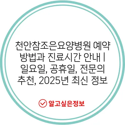 천안참조은요양병원 예약 방법과 진료시간 안내 | 일요일, 공휴일, 전문의 추천, 2025년 최신 정보