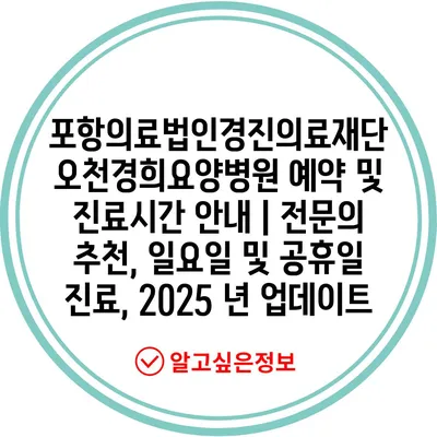 포항의료법인경진의료재단 오천경희요양병원 예약 및 진료시간 안내 | 전문의 추천, 일요일 및 공휴일 진료, 2025 년 업데이트