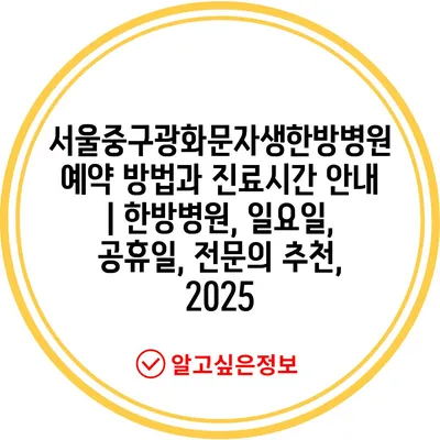 서울중구광화문자생한방병원 예약 방법과 진료시간 안내 | 한방병원, 일요일, 공휴일, 전문의 추천, 2025