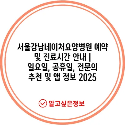 서울강남네이처요양병원 예약 및 진료시간 안내 | 일요일, 공휴일, 전문의 추천 및 앱 정보 2025