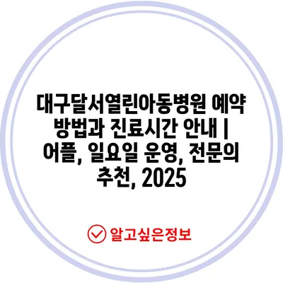 대구달서열린아동병원 예약 방법과 진료시간 안내 | 어플, 일요일 운영, 전문의 추천, 2025
