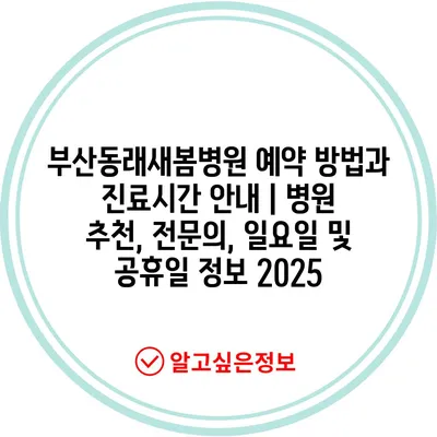 부산동래새봄병원 예약 방법과 진료시간 안내 | 병원 추천, 전문의, 일요일 및 공휴일 정보 2025