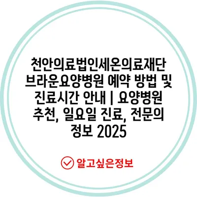 천안의료법인세온의료재단 브라운요양병원 예약 방법 및 진료시간 안내 | 요양병원 추천, 일요일 진료, 전문의 정보 2025