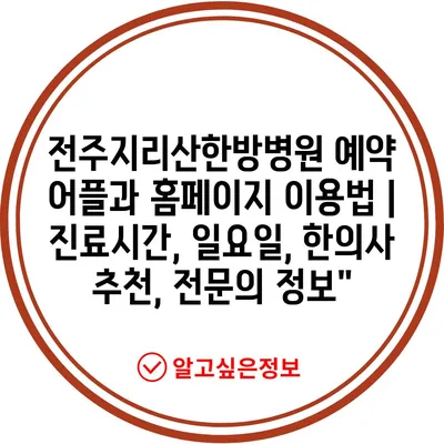 전주지리산한방병원 예약 어플과 홈페이지 이용법 | 진료시간, 일요일, 한의사 추천, 전문의 정보”