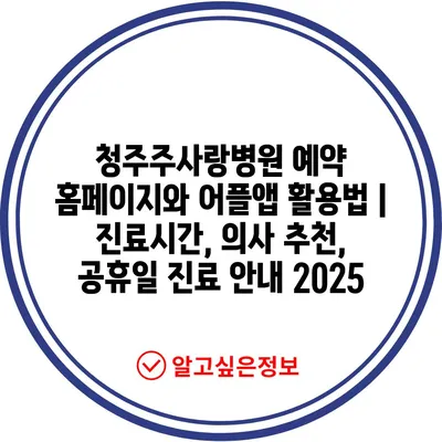 청주주사랑병원 예약 홈페이지와 어플앱 활용법 | 진료시간, 의사 추천, 공휴일 진료 안내 2025