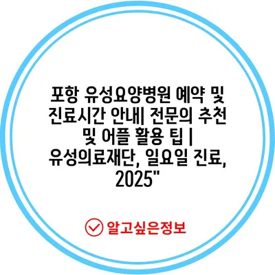 포항 유성요양병원 예약 및 진료시간 안내| 전문의 추천 및 어플 활용 팁 | 유성의료재단, 일요일 진료, 2025″