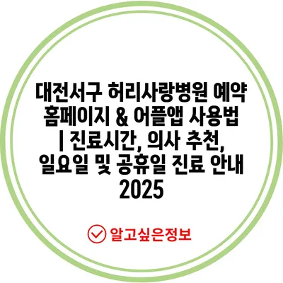대전서구 허리사랑병원 예약 홈페이지 & 어플앱 사용법 | 진료시간, 의사 추천, 일요일 및 공휴일 진료 안내 2025