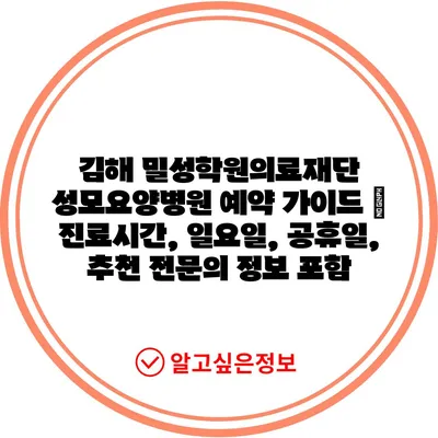 김해 밀성학원의료재단 성모요양병원 예약 가이드 | 진료시간, 일요일, 공휴일, 추천 전문의 정보 포함