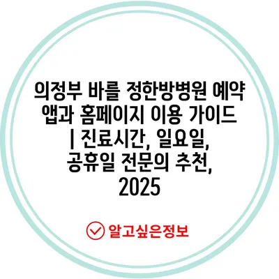 의정부 바를 정한방병원 예약 앱과 홈페이지 이용 가이드 | 진료시간, 일요일, 공휴일 전문의 추천, 2025