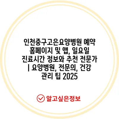 인천중구고은요양병원 예약 홈페이지 및 앱, 일요일 진료시간 정보와 추천 전문가 | 요양병원, 전문의, 건강 관리 팁 2025