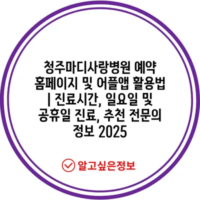 청주마디사랑병원 예약 홈페이지 및 어플앱 활용법 | 진료시간, 일요일 및 공휴일 진료, 추천 전문의 정보 2025
