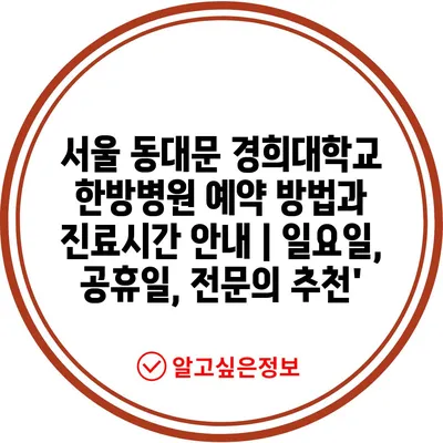 서울 동대문 경희대학교 한방병원 예약 방법과 진료시간 안내 | 일요일, 공휴일, 전문의 추천’