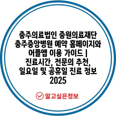 충주의료법인 중원의료재단 충주중앙병원 예약 홈페이지와 어플앱 이용 가이드 | 진료시간, 전문의 추천, 일요일 및 공휴일 진료 정보 2025