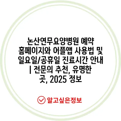 논산연무요양병원 예약 홈페이지와 어플앱 사용법 및 일요일/공휴일 진료시간 안내 | 전문의 추천, 유명한 곳, 2025 정보