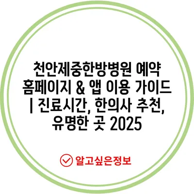 천안제중한방병원 예약 홈페이지 & 앱 이용 가이드 | 진료시간, 한의사 추천, 유명한 곳 2025