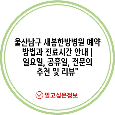 울산남구 새봄한방병원 예약 방법과 진료시간 안내 | 일요일, 공휴일, 전문의 추천 및 리뷰”