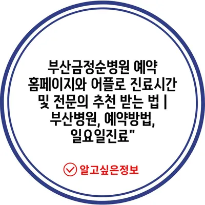 부산금정순병원 예약 홈페이지와 어플로 진료시간 및 전문의 추천 받는 법 | 부산병원, 예약방법, 일요일진료”