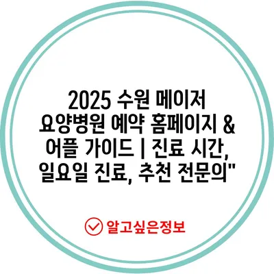 2025 수원 메이저 요양병원 예약 홈페이지 & 어플 가이드 | 진료 시간, 일요일 진료, 추천 전문의”