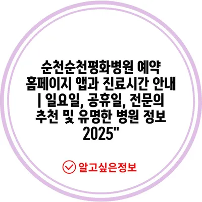 순천순천평화병원 예약 홈페이지 앱과 진료시간 안내 | 일요일, 공휴일, 전문의 추천 및 유명한 병원 정보 2025″