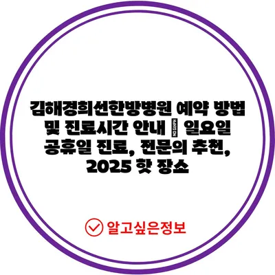 김해경희선한방병원 예약 방법 및 진료시간 안내 | 일요일 공휴일 진료, 전문의 추천, 2025 핫 장소