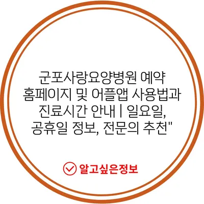군포사랑요양병원 예약 홈페이지 및 어플앱 사용법과 진료시간 안내 | 일요일, 공휴일 정보, 전문의 추천”
