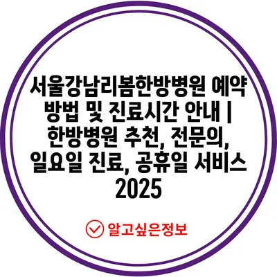 서울강남리봄한방병원 예약 방법 및 진료시간 안내 | 한방병원 추천, 전문의, 일요일 진료, 공휴일 서비스 2025