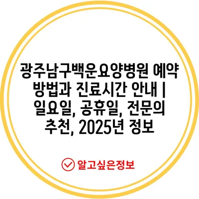 광주남구백운요양병원 예약 방법과 진료시간 안내 | 일요일, 공휴일, 전문의 추천, 2025년 정보