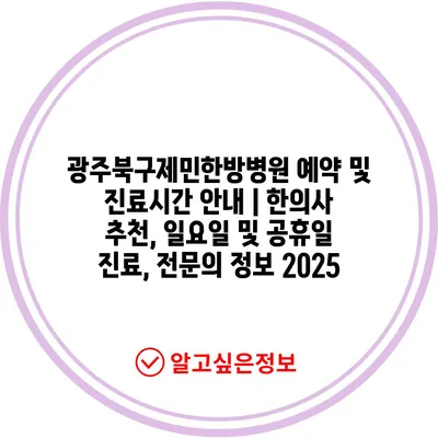 광주북구제민한방병원 예약 및 진료시간 안내 | 한의사 추천, 일요일 및 공휴일 진료, 전문의 정보 2025