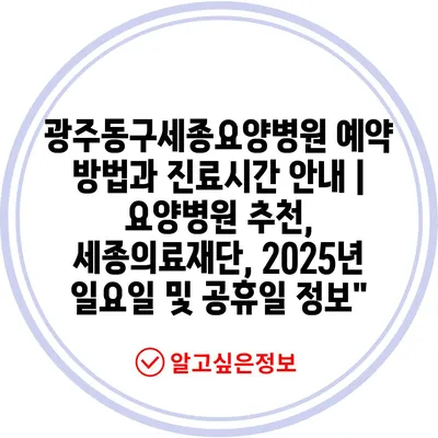 광주동구세종요양병원 예약 방법과 진료시간 안내 | 요양병원 추천, 세종의료재단, 2025년 일요일 및 공휴일 정보”