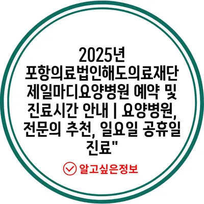 2025년 포항의료법인해도의료재단 제일마디요양병원 예약 및 진료시간 안내 | 요양병원, 전문의 추천, 일요일 공휴일 진료”