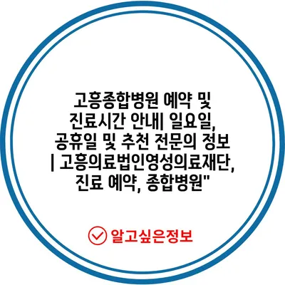 고흥종합병원 예약 및 진료시간 안내| 일요일, 공휴일 및 추천 전문의 정보 | 고흥의료법인영성의료재단, 진료 예약, 종합병원”