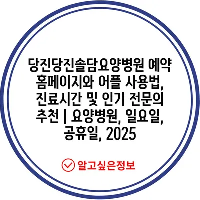 당진당진솔담요양병원 예약 홈페이지와 어플 사용법, 진료시간 및 인기 전문의 추천 | 요양병원, 일요일, 공휴일, 2025
