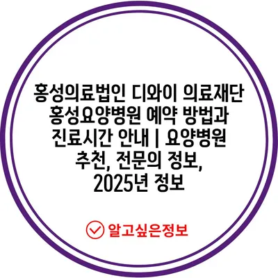 홍성의료법인 디와이 의료재단 홍성요양병원 예약 방법과 진료시간 안내 | 요양병원 추천, 전문의 정보, 2025년 정보