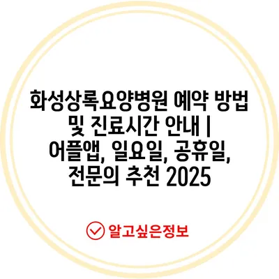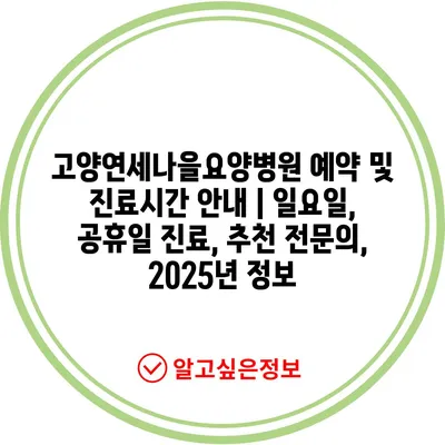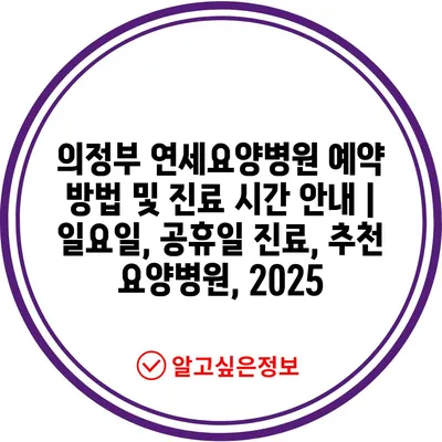의정부 연세요양병원 예약 방법 및 진료 시간 안내 | 일요일, 공휴일 진료, 추천 요양병원, 2025