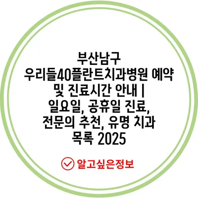 부산남구 우리들40플란트치과병원 예약 및 진료시간 안내 | 일요일, 공휴일 진료, 전문의 추천, 유명 치과 목록 2025