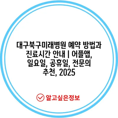 대구북구미래병원 예약 방법과 진료시간 안내 | 어플앱, 일요일, 공휴일, 전문의 추천, 2025