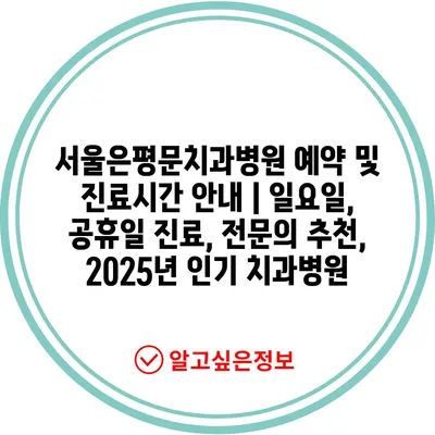 서울은평문치과병원 예약 및 진료시간 안내 | 일요일, 공휴일 진료, 전문의 추천, 2025년 인기 치과병원
