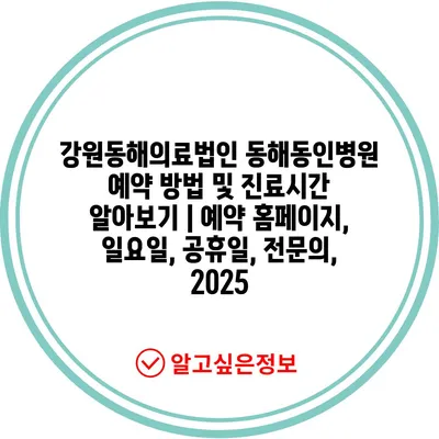강원동해의료법인 동해동인병원 예약 방법 및 진료시간 알아보기 | 예약 홈페이지, 일요일, 공휴일, 전문의, 2025