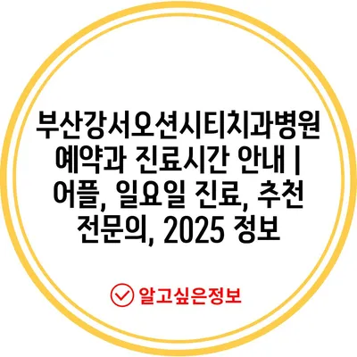 부산강서오션시티치과병원 예약과 진료시간 안내 | 어플, 일요일 진료, 추천 전문의, 2025 정보