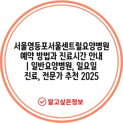 서울영등포서울센트럴요양병원 예약 방법과 진료시간 안내 | 일반요양병원, 일요일 진료, 전문가 추천 2025