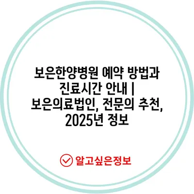 보은한양병원 예약 방법과 진료시간 안내 | 보은의료법인, 전문의 추천, 2025년 정보