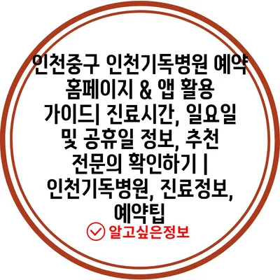 인천중구 인천기독병원 예약 홈페이지 & 앱 활용 가이드| 진료시간, 일요일 및 공휴일 정보, 추천 전문의 확인하기 | 인천기독병원, 진료정보, 예약팁