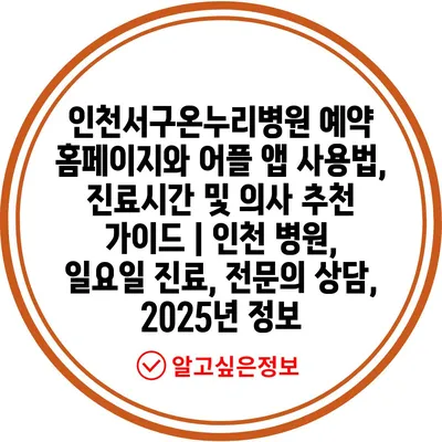 인천서구온누리병원 예약 홈페이지와 어플 앱 사용법, 진료시간 및 의사 추천 가이드 | 인천 병원, 일요일 진료, 전문의 상담, 2025년 정보