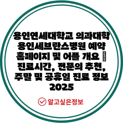 용인연세대학교 의과대학 용인세브란스병원 예약 홈페이지 및 어플 개요 | 진료시간, 전문의 추천, 주말 및 공휴일 진료 정보 2025