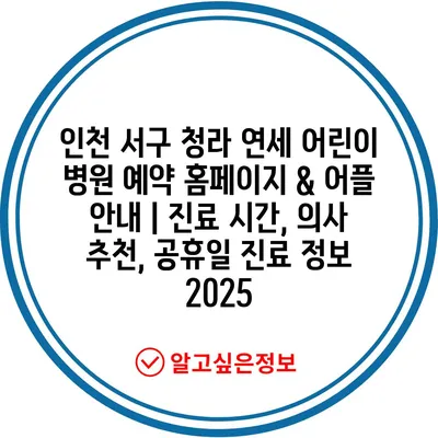 인천 서구 청라 연세 어린이 병원 예약 홈페이지 & 어플 안내 | 진료 시간, 의사 추천, 공휴일 진료 정보 2025