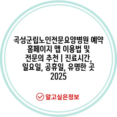 곡성군립노인전문요양병원 예약 홈페이지 앱 이용법 및 전문의 추천 | 진료시간, 일요일, 공휴일, 유명한 곳 2025