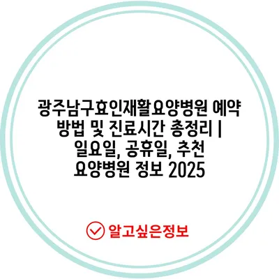 광주남구효인재활요양병원 예약 방법 및 진료시간 총정리 | 일요일, 공휴일, 추천 요양병원 정보 2025
