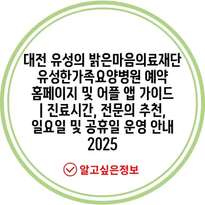 대전 유성의 밝은마음의료재단 유성한가족요양병원 예약 홈페이지 및 어플 앱 가이드 | 진료시간, 전문의 추천, 일요일 및 공휴일 운영 안내 2025